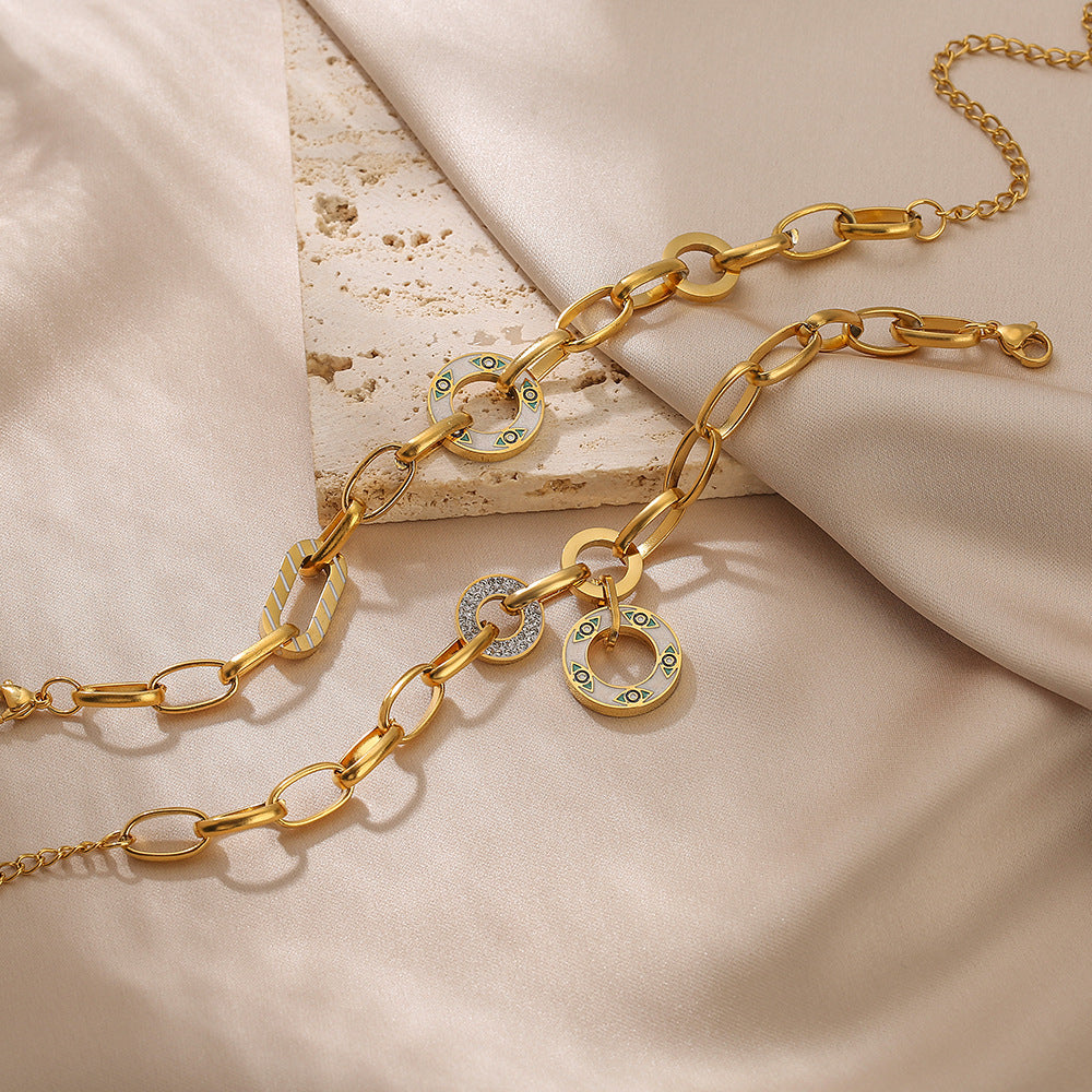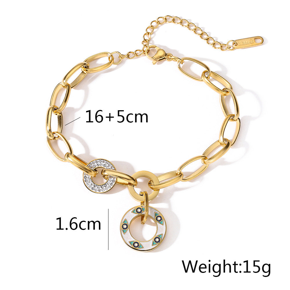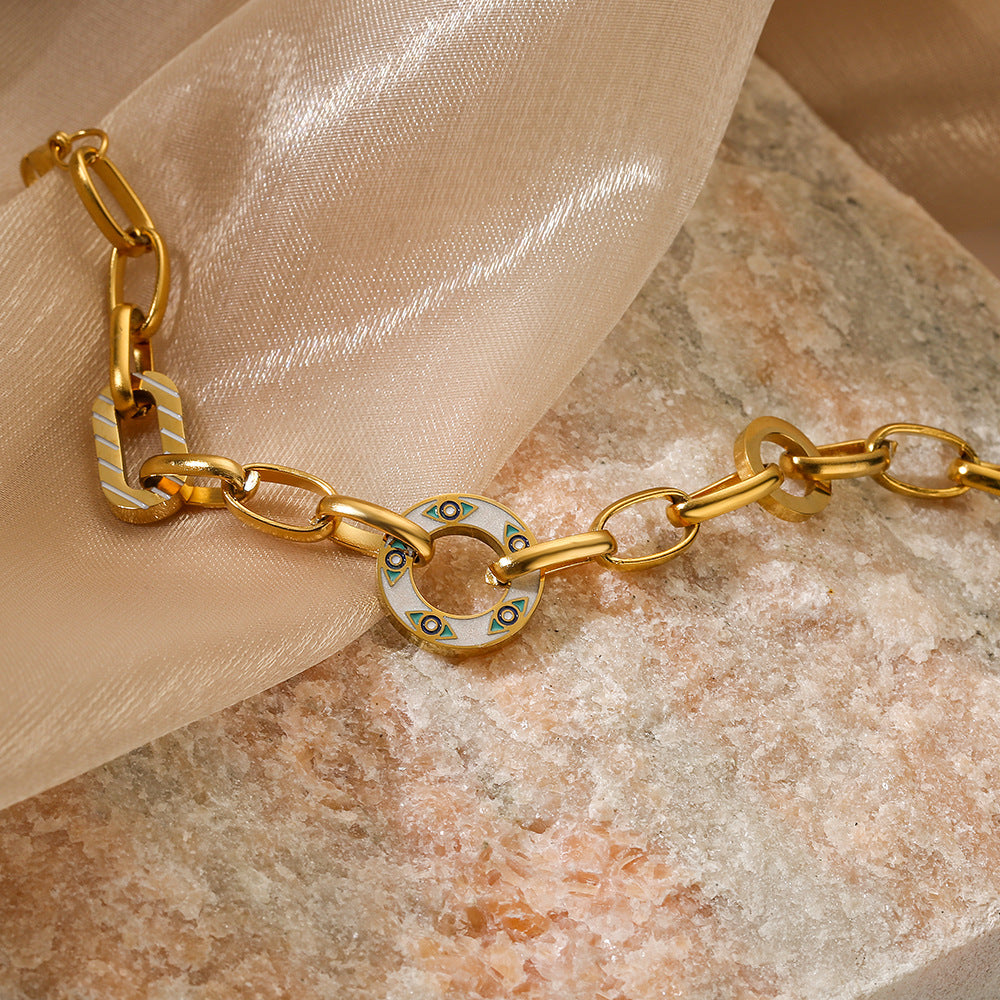 Evil Eye Halo Circle Pendant Chain Bracelet