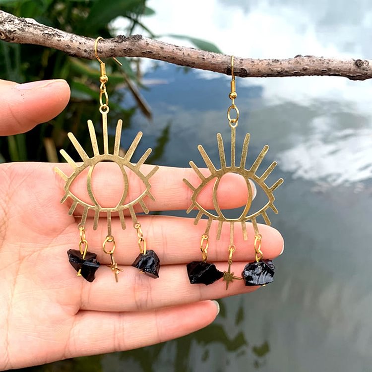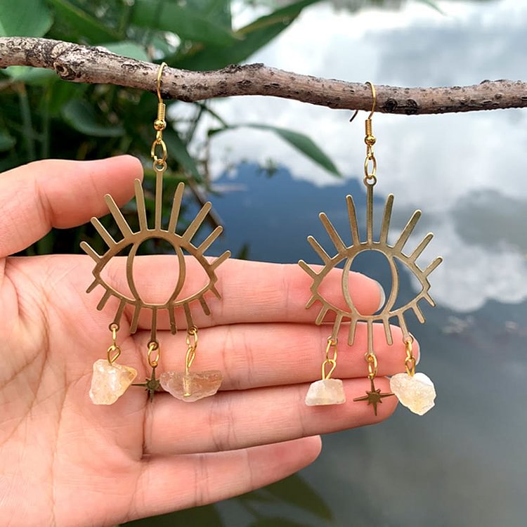 Evil Eye Tears Star Pendant Crystal Earrings