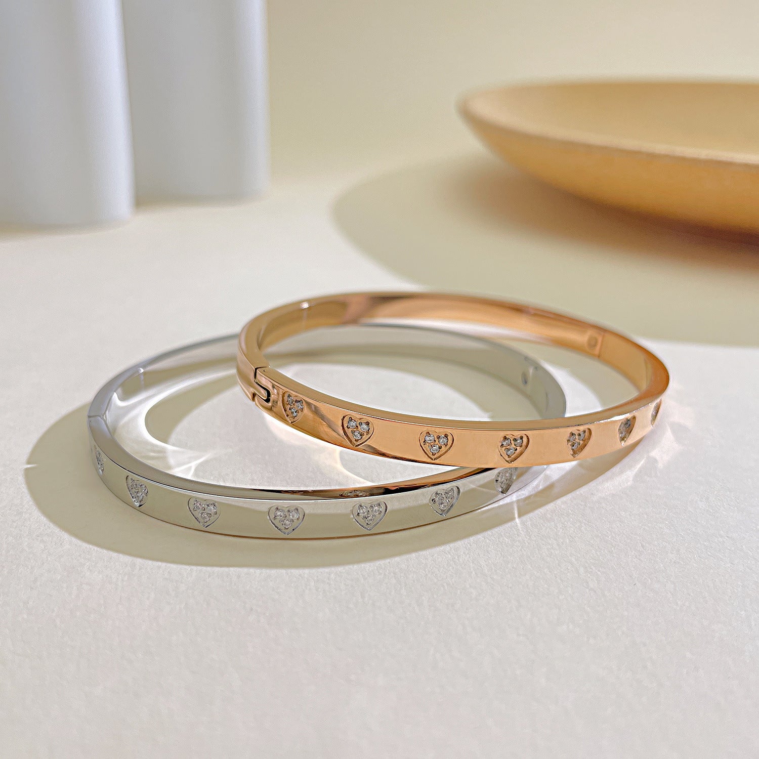 Temperament Heart-shaped Zircon Diamond Set Fashion All-match Titanium Steel Bracelet