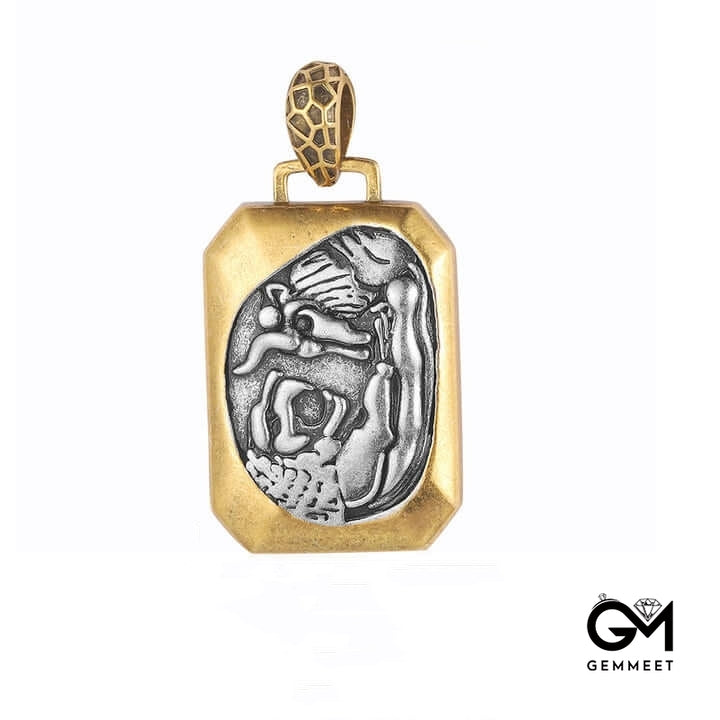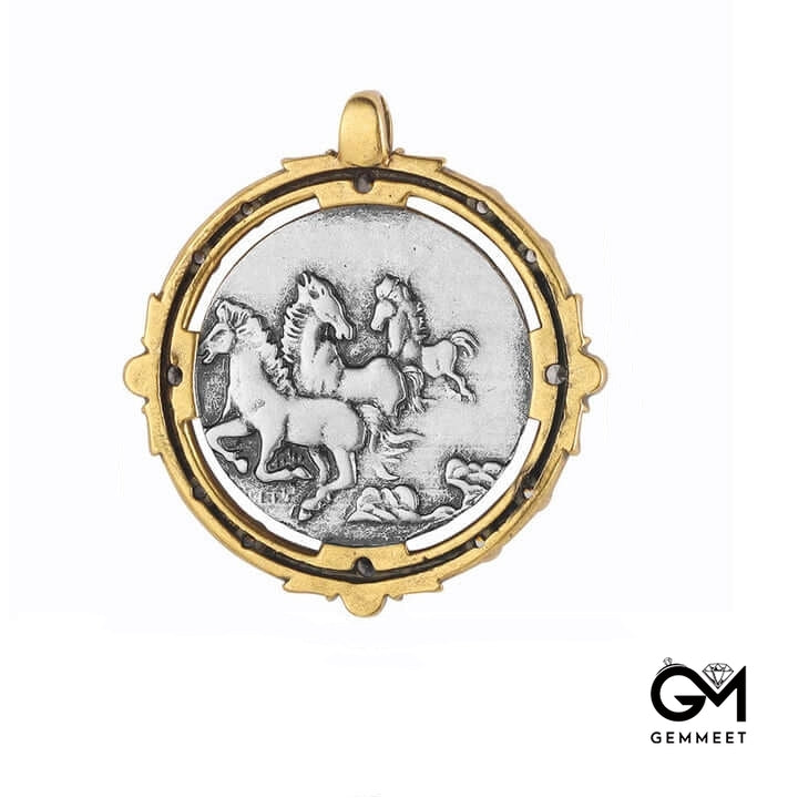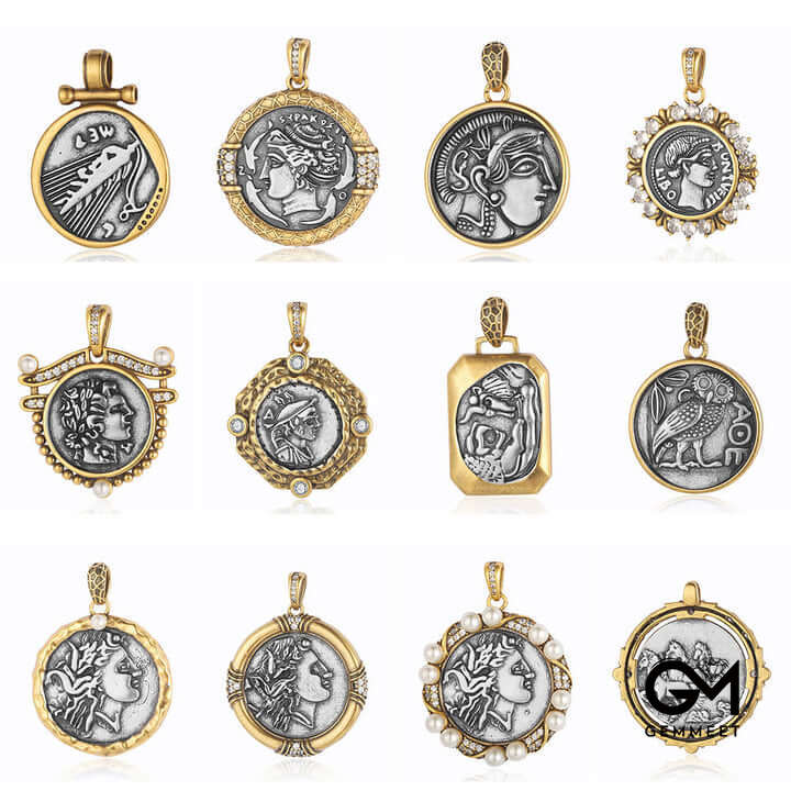 French Vintage Ancient Bronze Coin Pendant Necklace