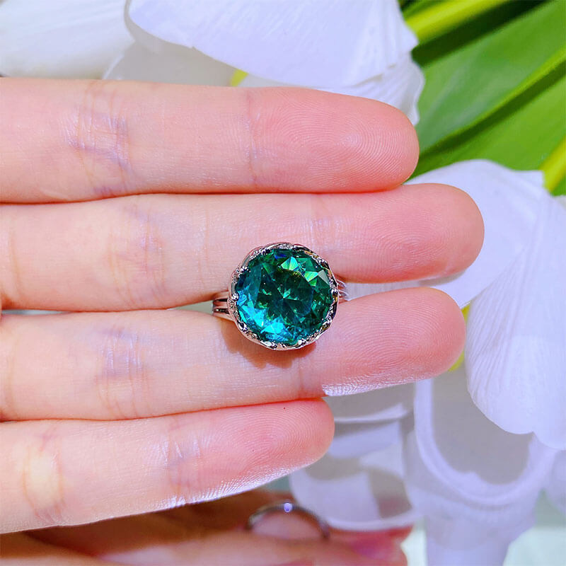 Full Diamond Lotus Ring 7.5 Carat Yellow Diamond Colored Jewel Ring for Women