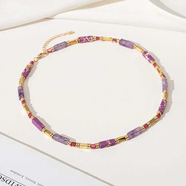 Geometric Rectangle Charoite Purple Emperor Stone Clavicle Necklace
