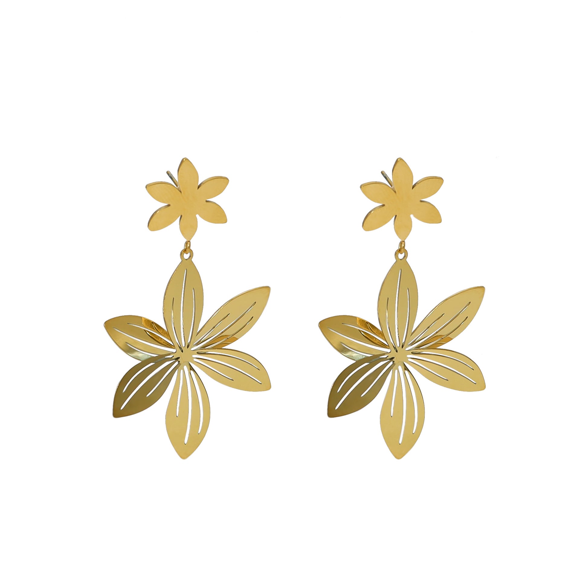 Gold Stainless Steel Petal Earrings