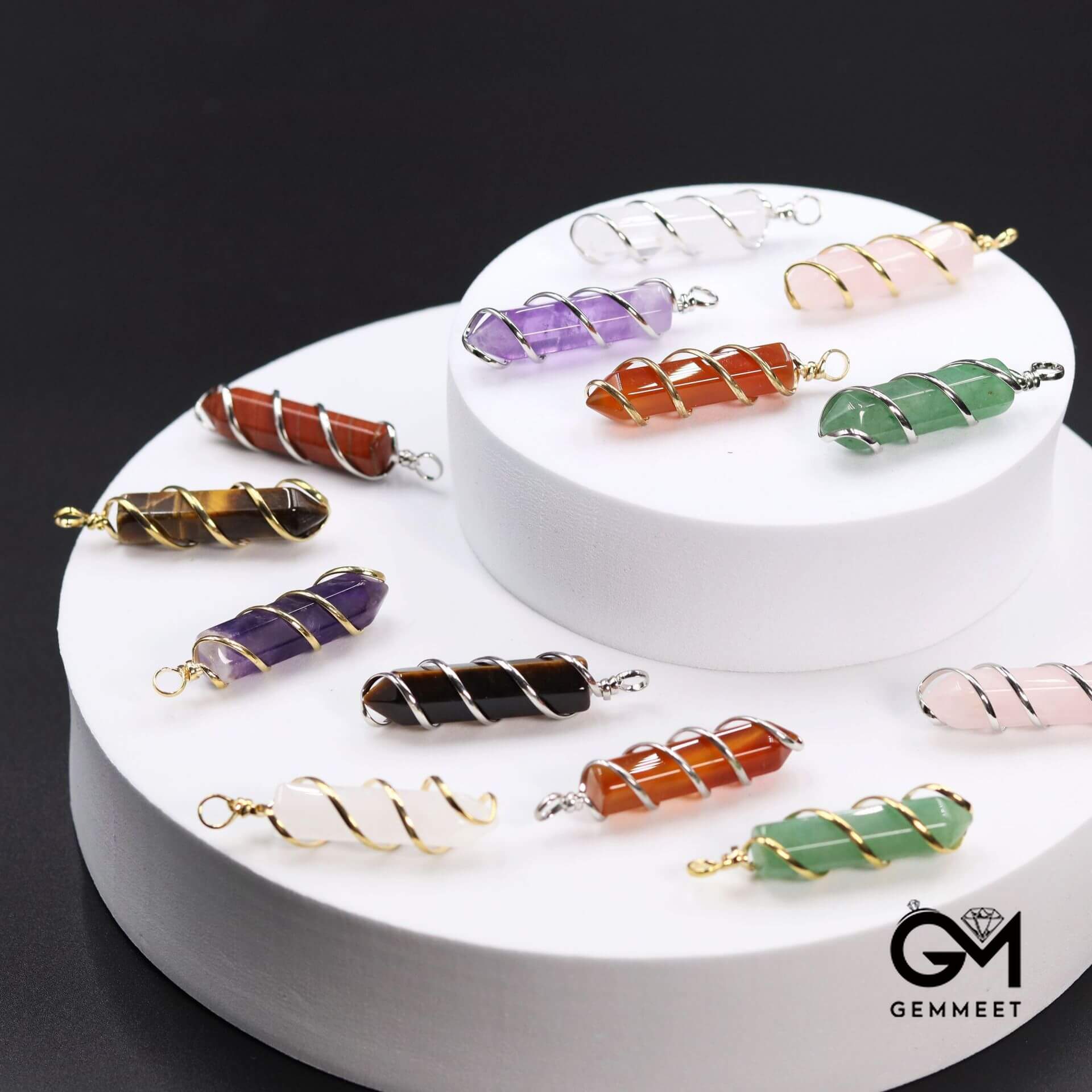 Green Aventurine Hexagon Spiral Agate Wound Pendant