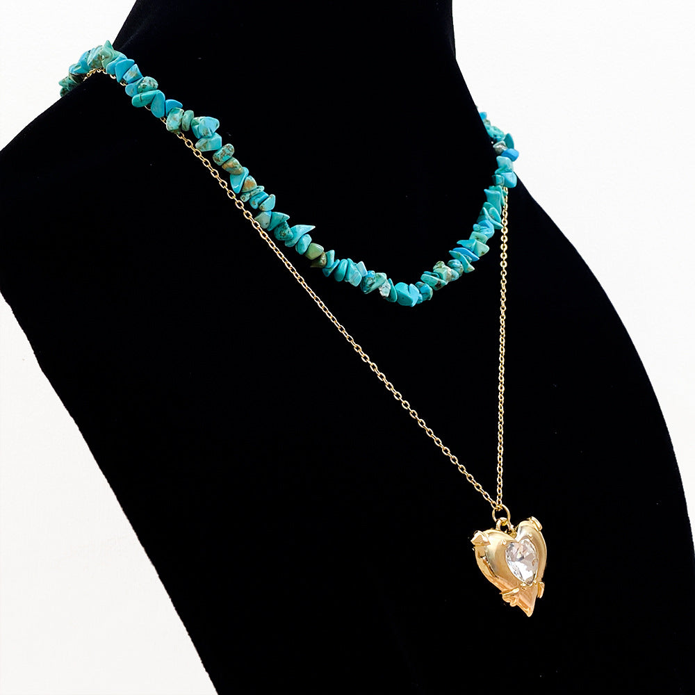 Green Stone Love Pendant Necklace