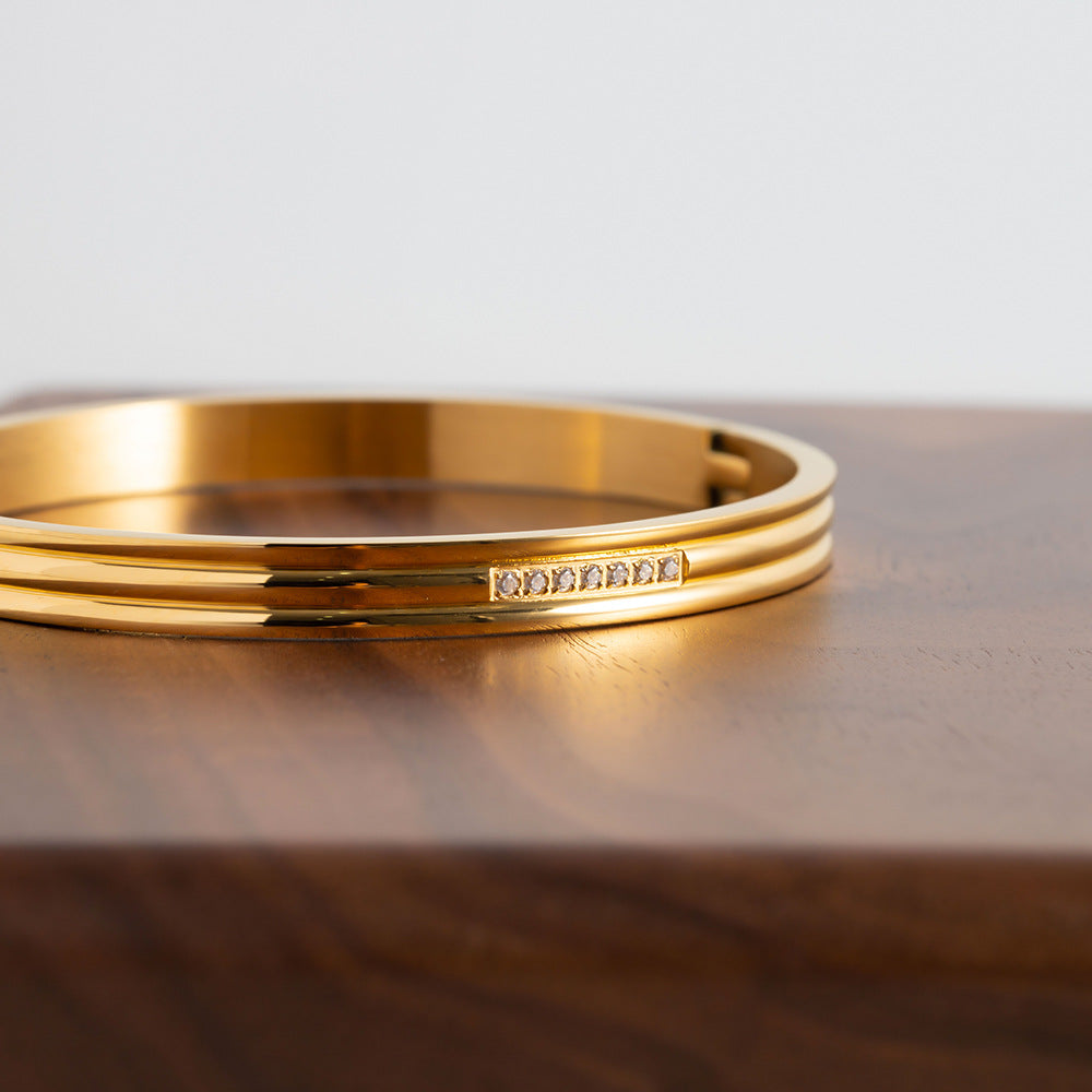 Gypsy Setting Stones 3 Layers Texture Bangle Bracelet