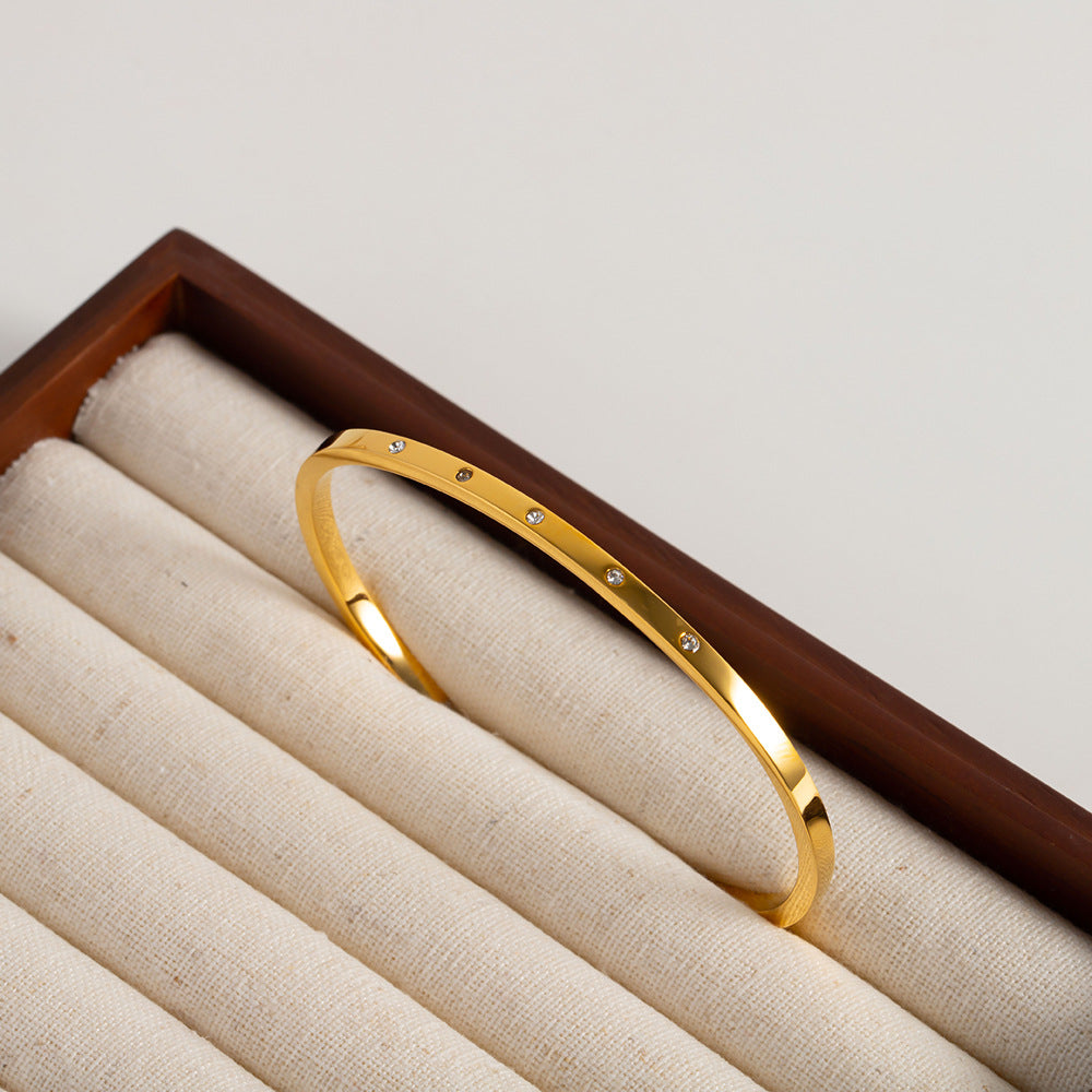 Gypsy Setting Stones Adjustable Thin Bangle Bracelet