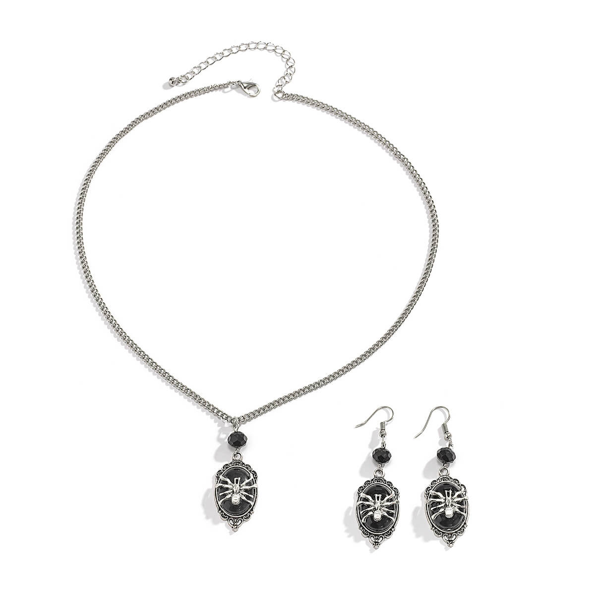 Halloween Animal Black Gemstone Dark Earring Necklace Gothic Style Retro Spider Earring Pendant Necklace