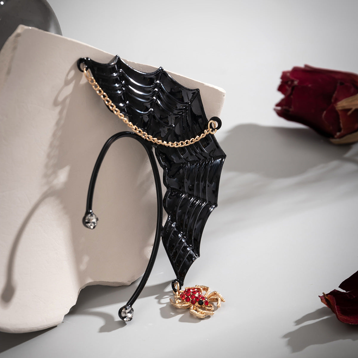 Halloween Black Bat Wing & Spider Pendant Clip Earrings