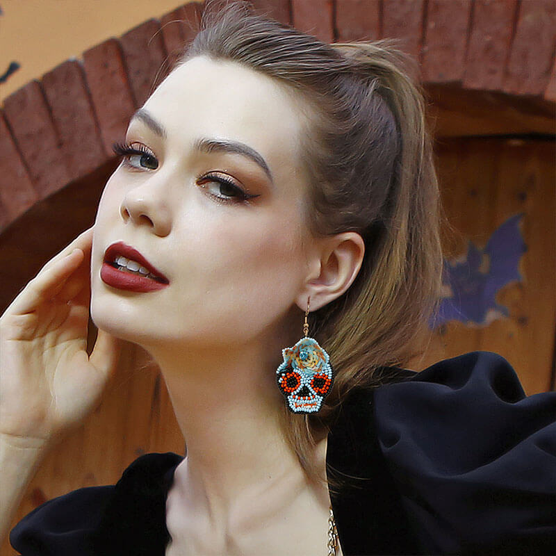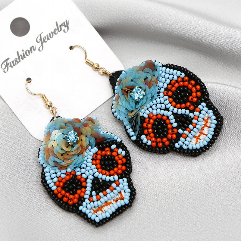 Halloween Hand-woven Hand-made Earrings Rice Beads Skull Skull Ghost Head Punk Personality Earrings