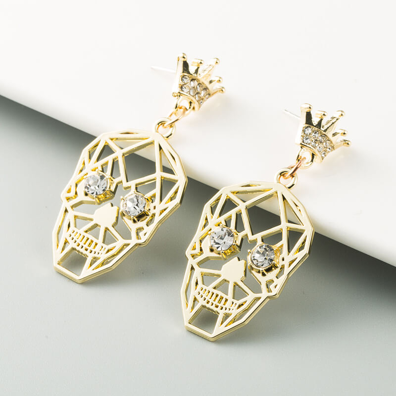 Halloween New Exaggerated Skull Inlaid Rhinestone Crown Earrings