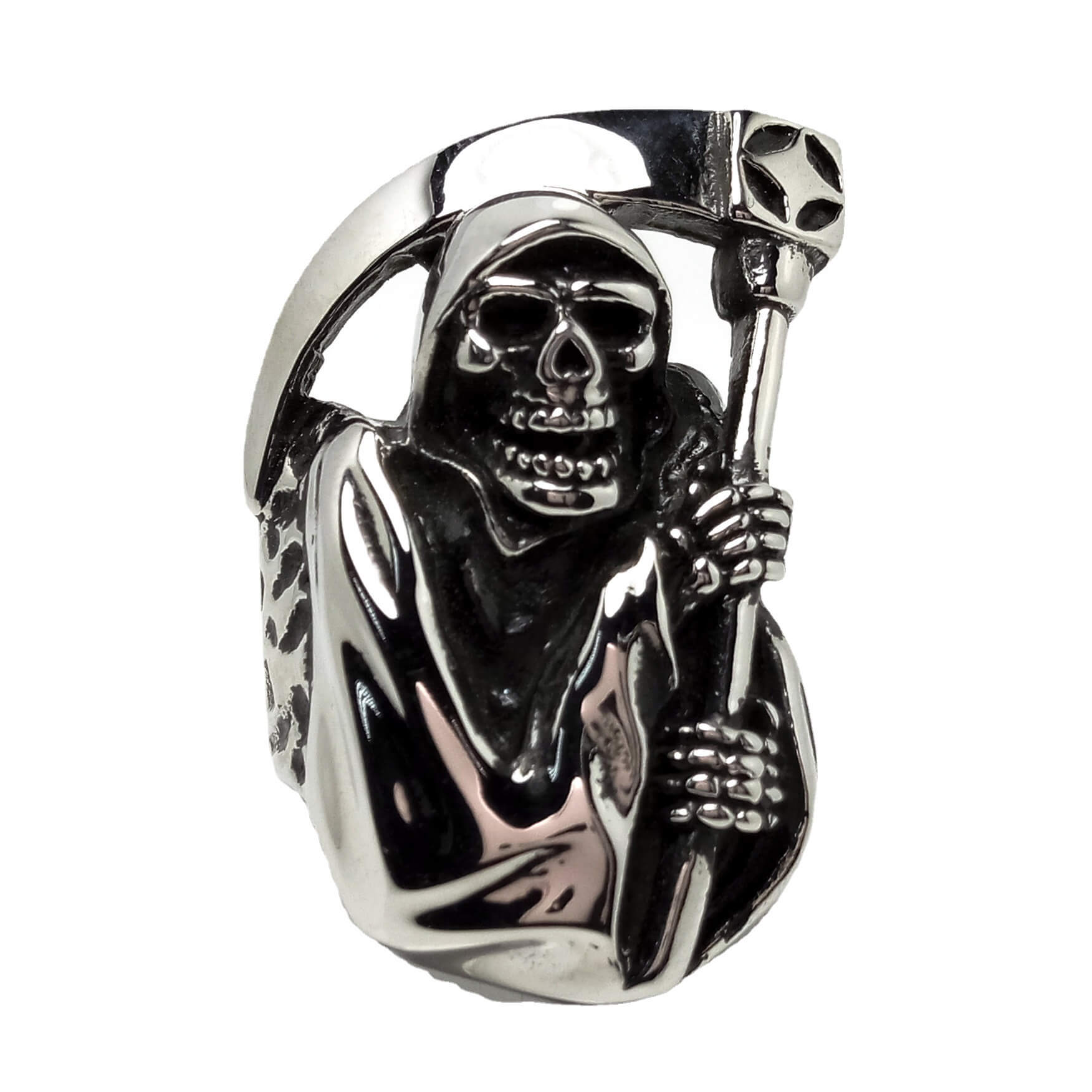 Halloween Punk Vintage Ring Polished Skull Reaper's Scythe Men's Ring