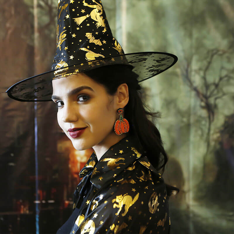 Halloween Retro Pumpkin Earrings Bohemian High-end Handmade Rice Bead Earrings