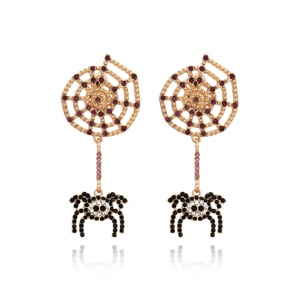 Halloween Spider Web Earrings Full Paved Zircon Spider Earrings Retro Fashion Insect Earrings