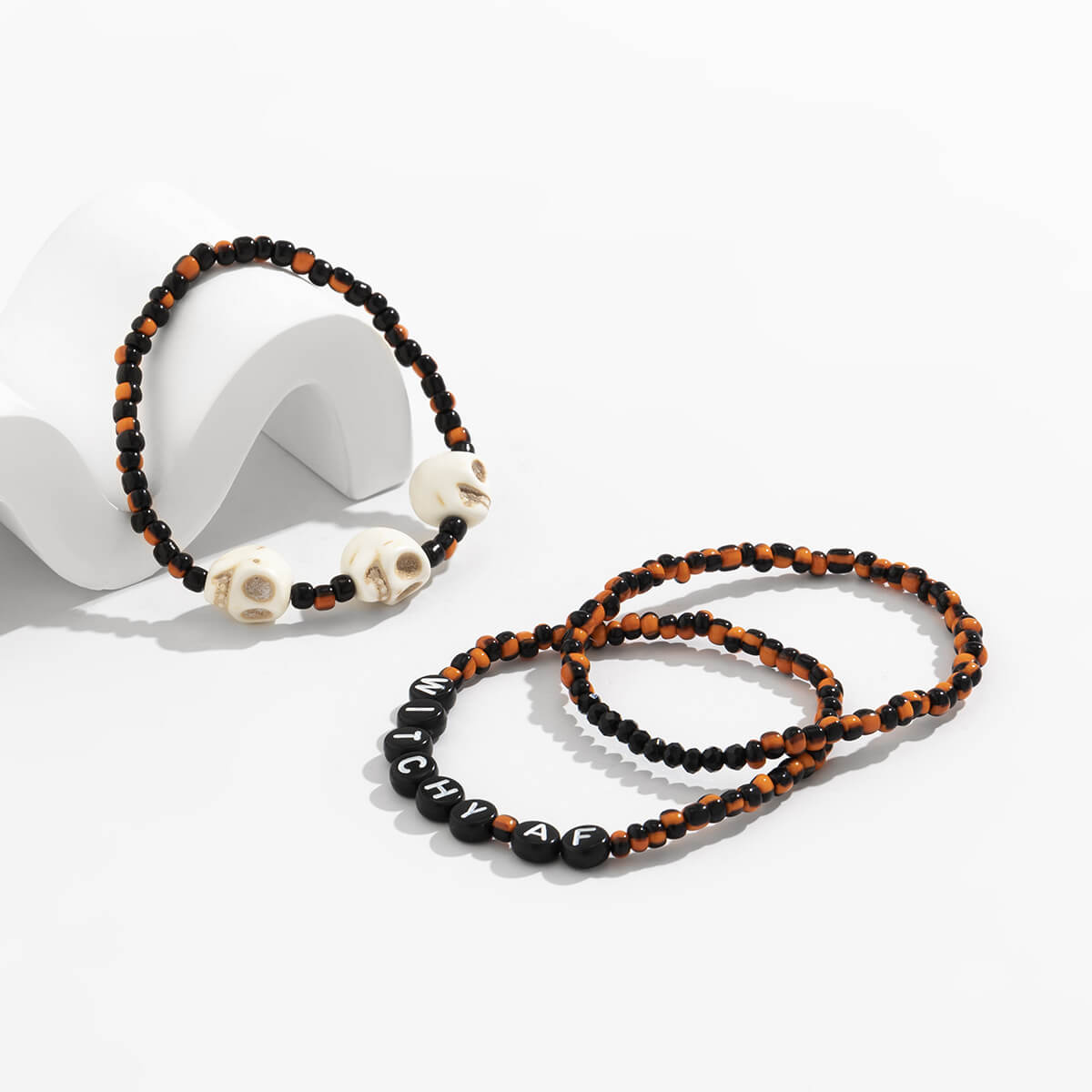 Halloween Spooky Woven Bracelet Sweet Cool Vintage Skull Beaded Alphabet Bracelet