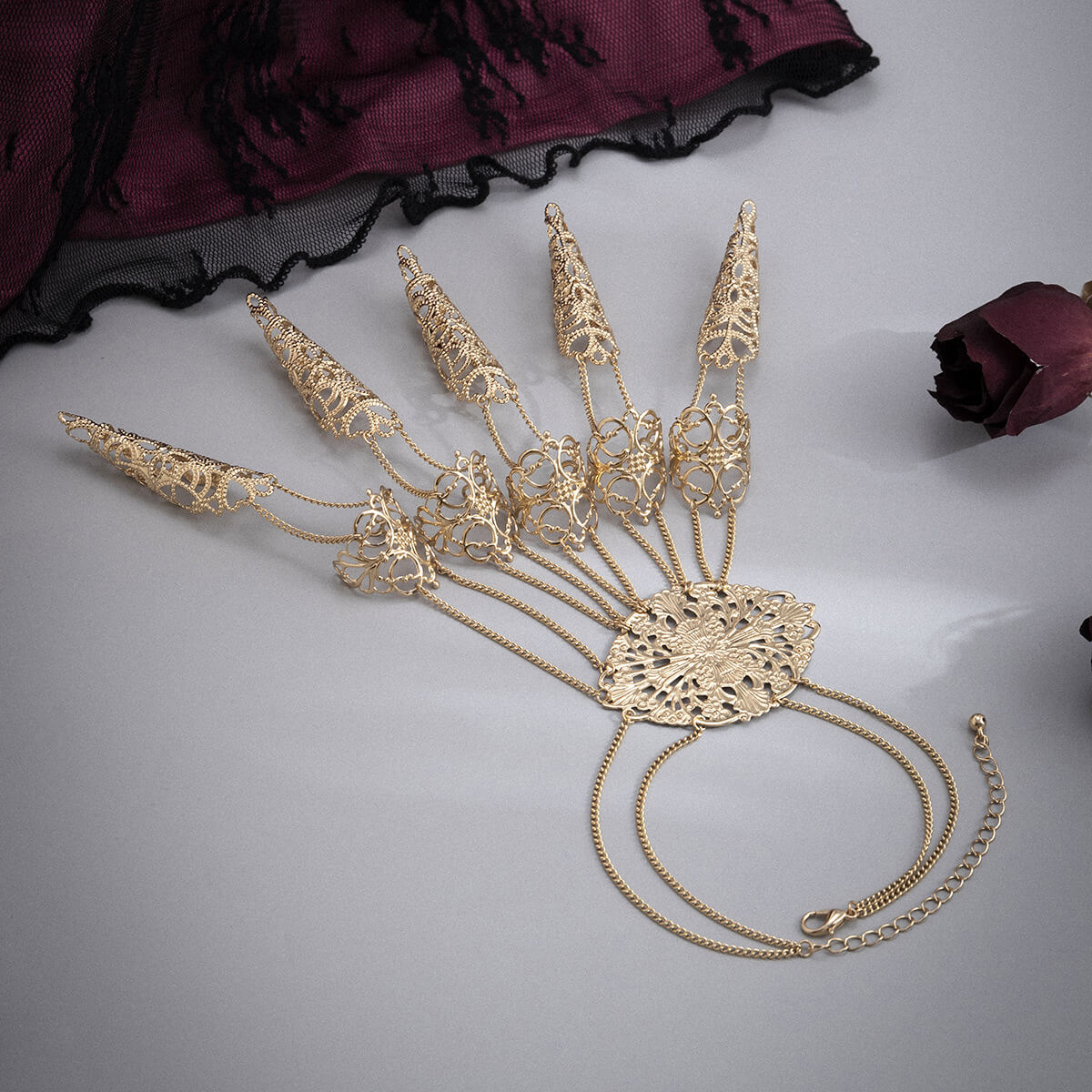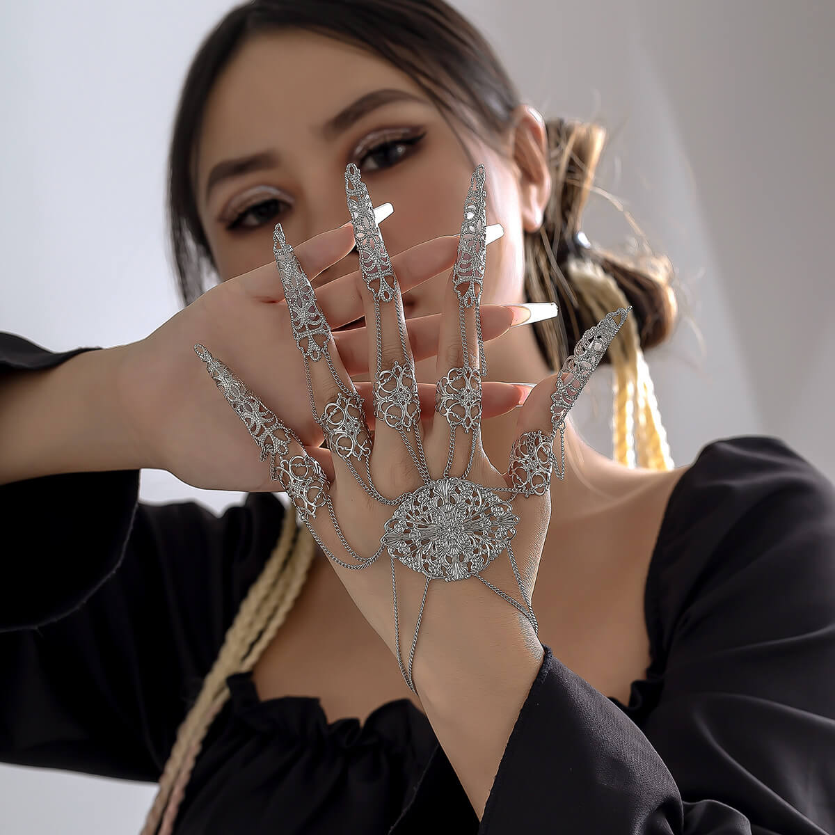 Halloween Tapered Tassel Nail Back Chain Punk Goth Exaggerated Mitten Bracelet
