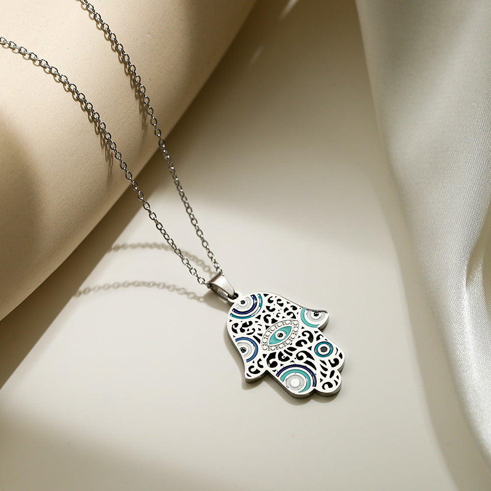Hamsa Evil Eye Hollow Pendant Necklace