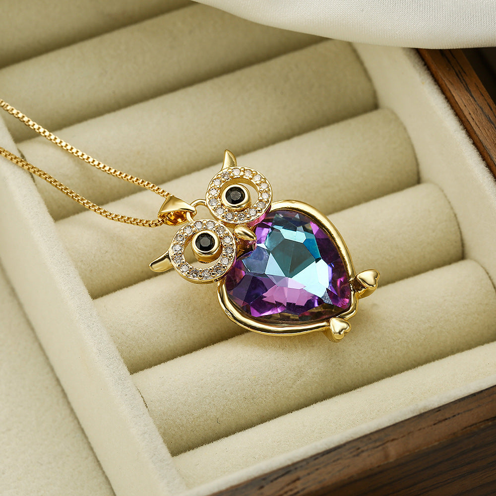Hollow Owl Heart Shape Pendant Chain Necklace
