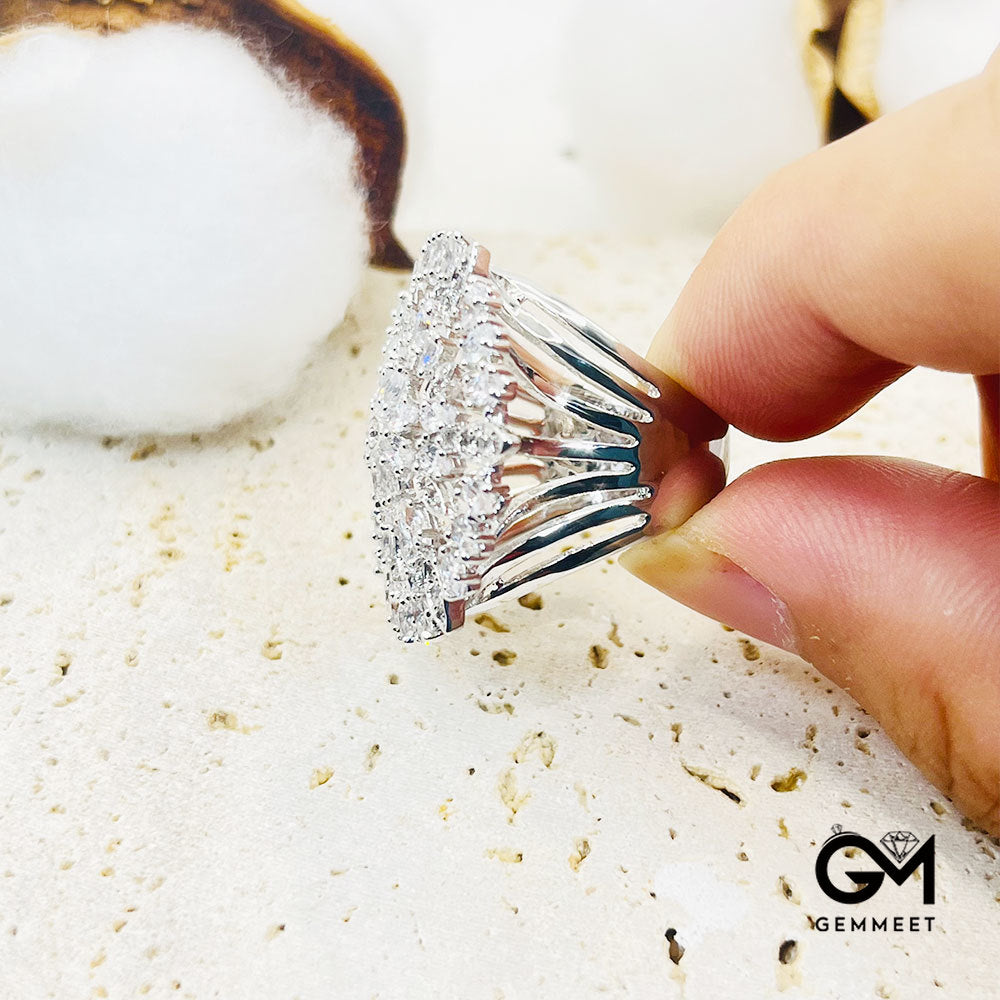 Hollow Umbrella Shape Full White Stones Signet Ring