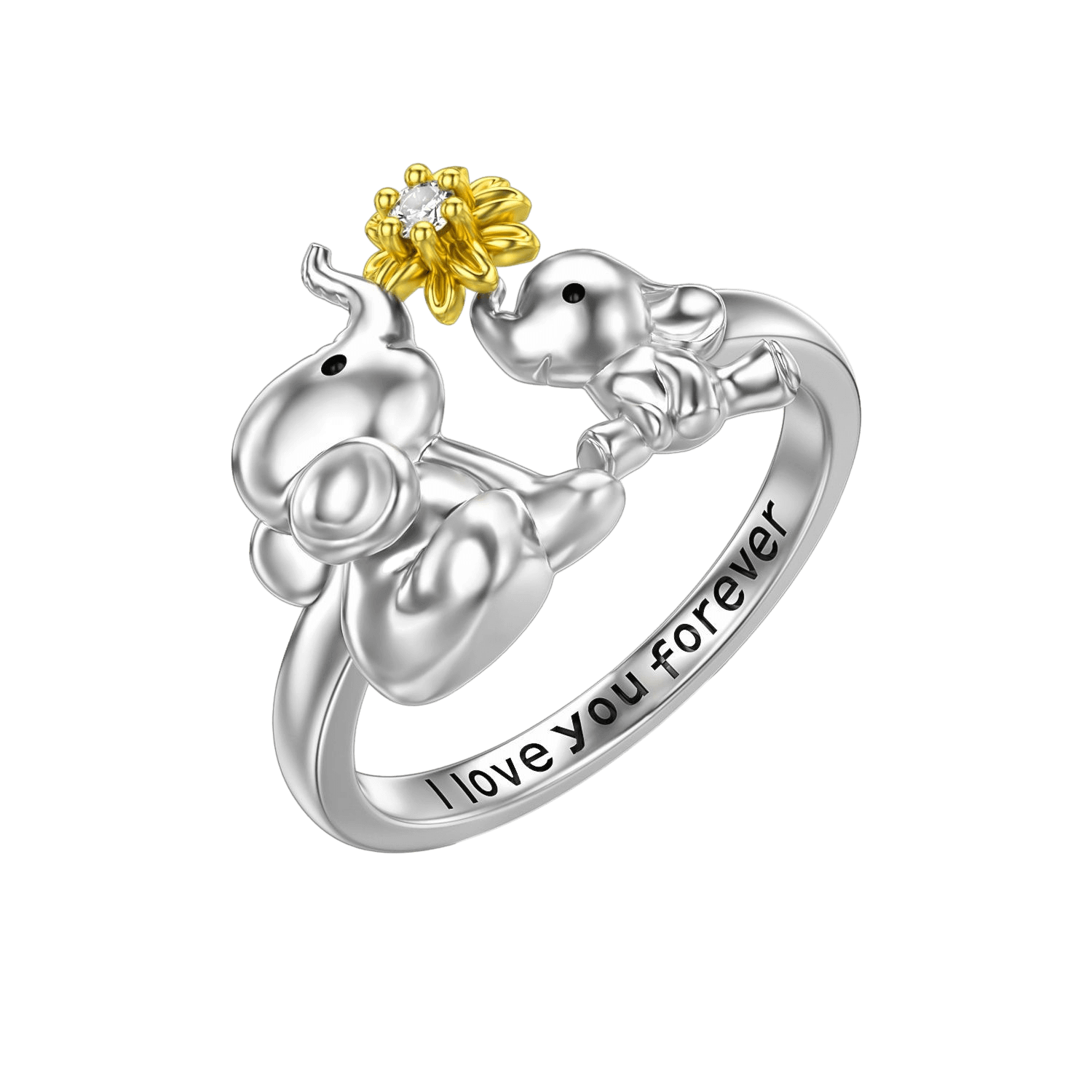"I Love You Forever" Mother and Child Elephant Daisy Ring