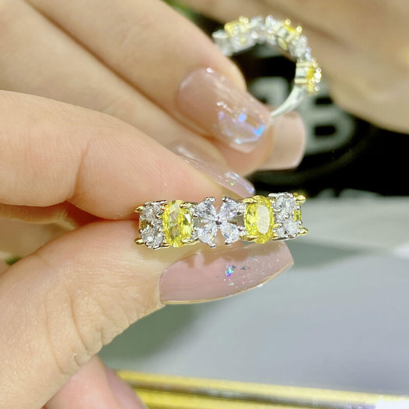 Imitation Natural Topaz Ring Platinum Water Drop Four-leaf Clover Egg-shaped Colorful Gemstone Ring