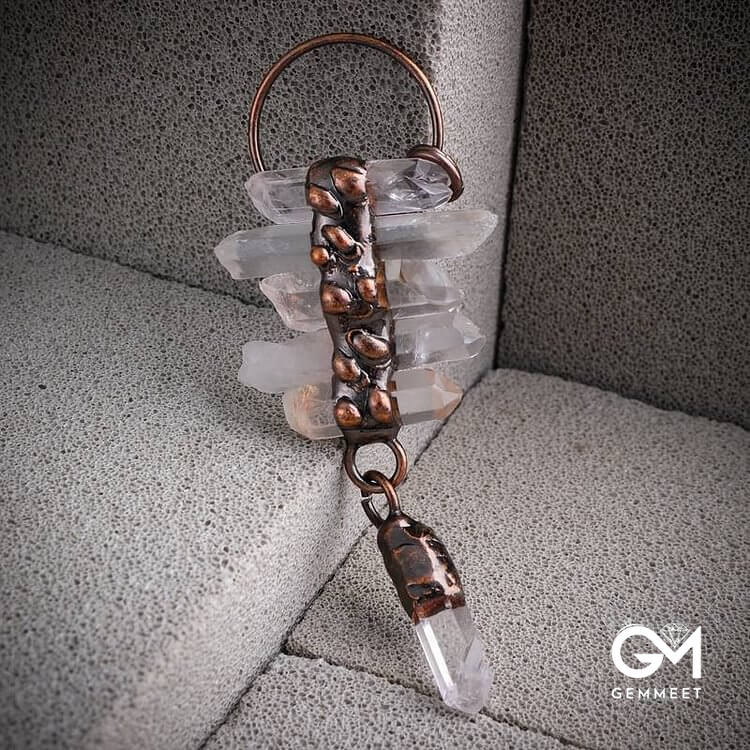 Irregular Clear Quartz Six-Piece Tassel Gemstone Necklace