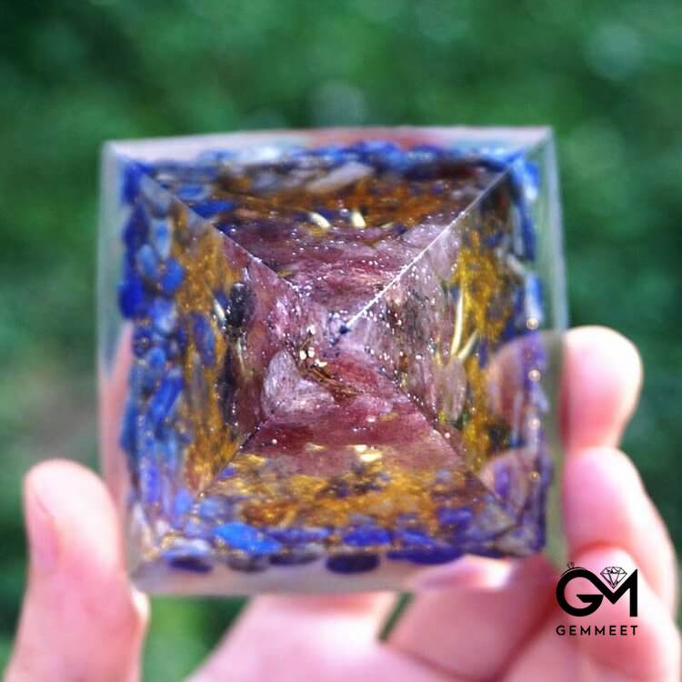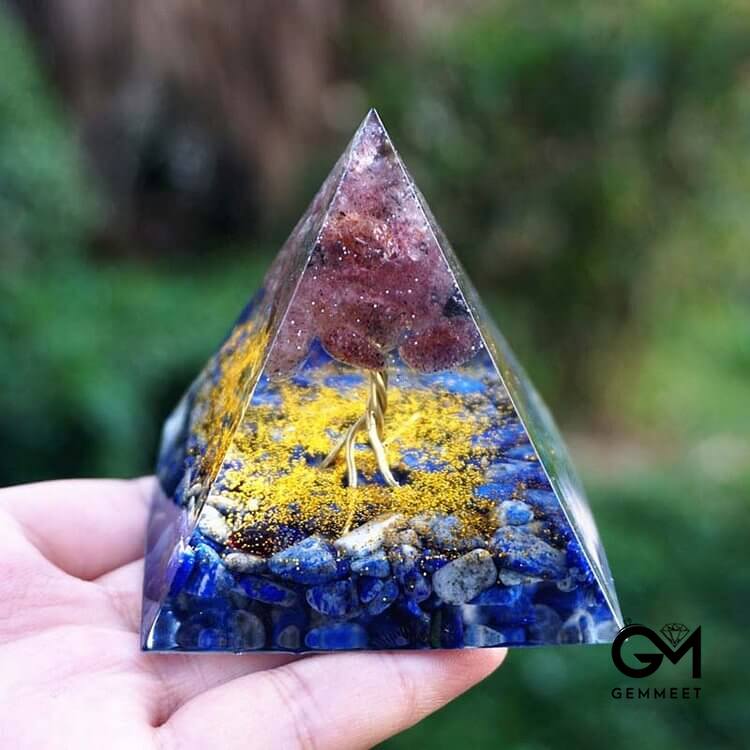 Lapis Lazuli With Strawberry Quartz Tree Of Life Orgone Pyramid