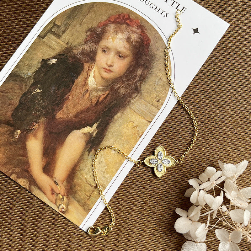 Light Luxury Retro Four-leaf Clover Gold and Silver Two-color Bracelet