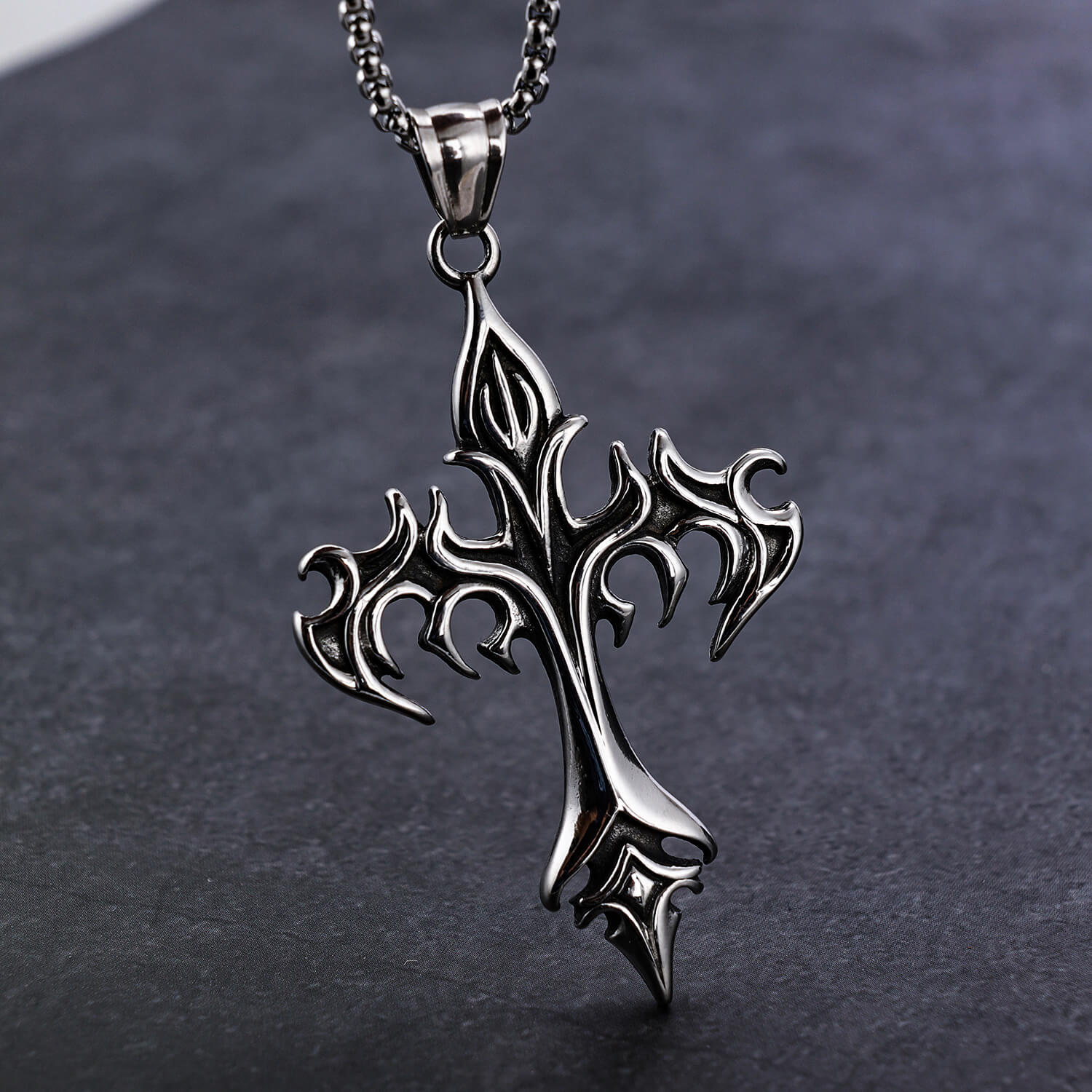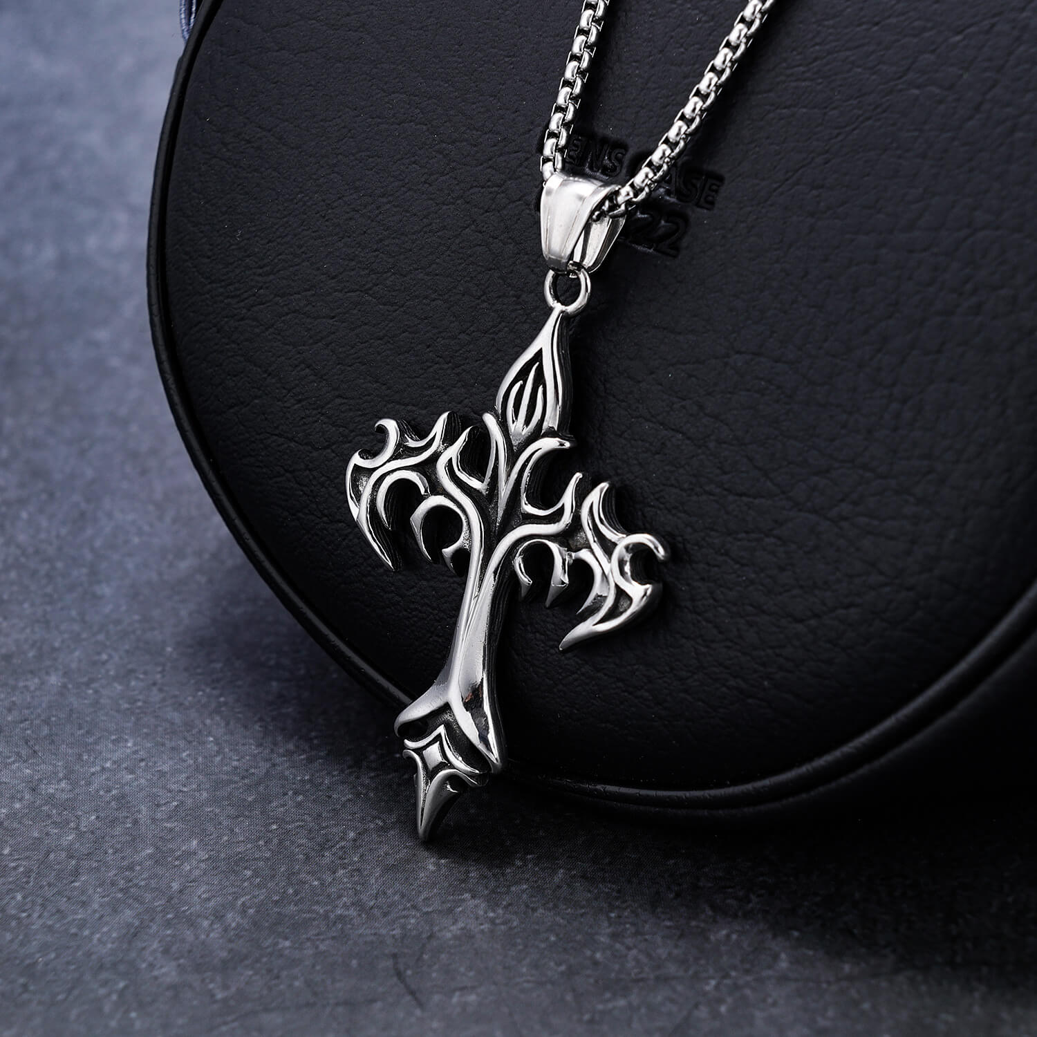 Majestic Flame Cross Shape Stainless Steel Pendant