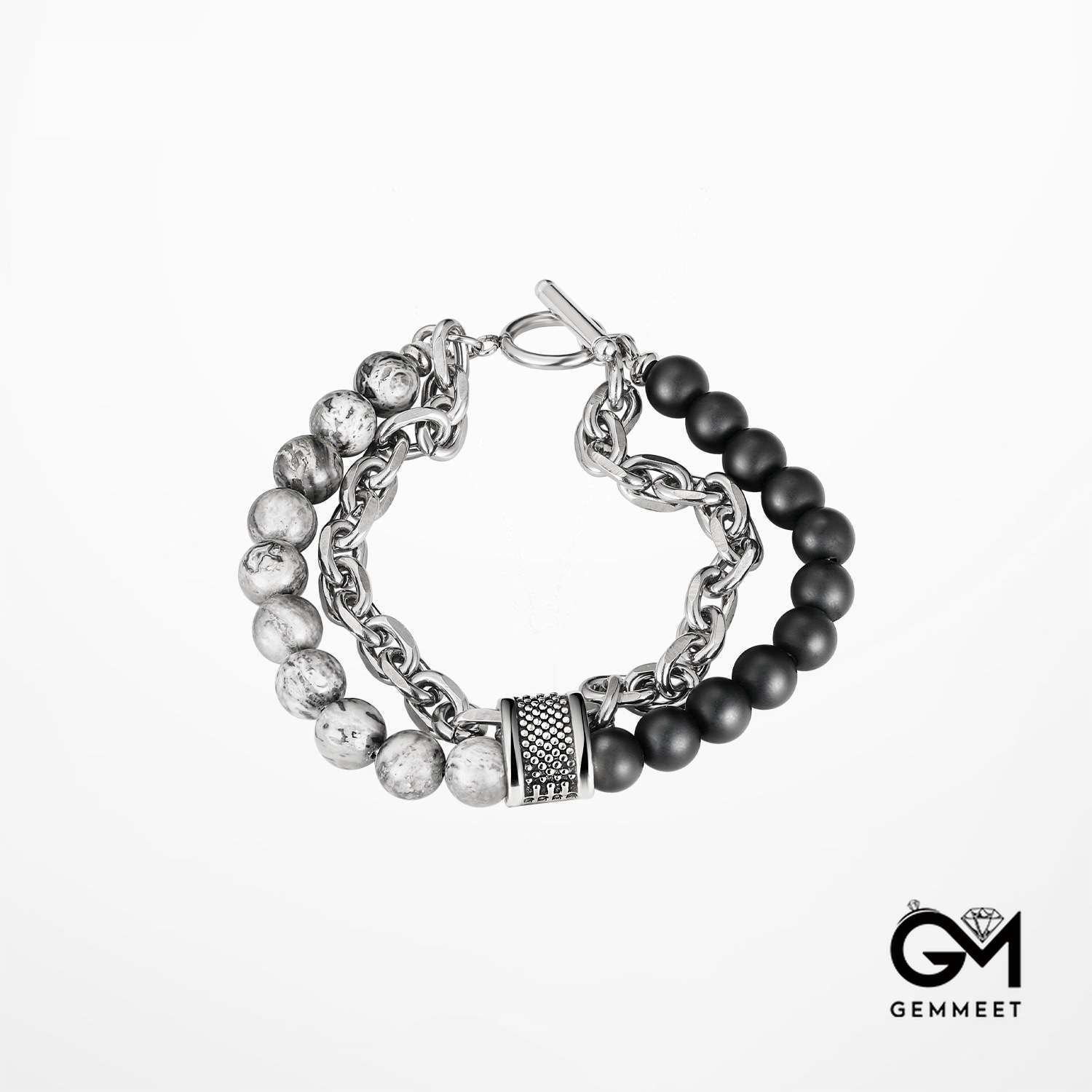 Men's Double Chain Link Stone Bracelet