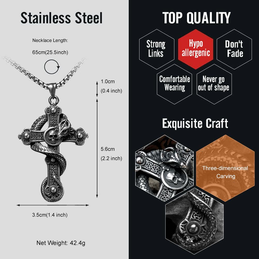 Mens Skull Dragon Cross Necklace
