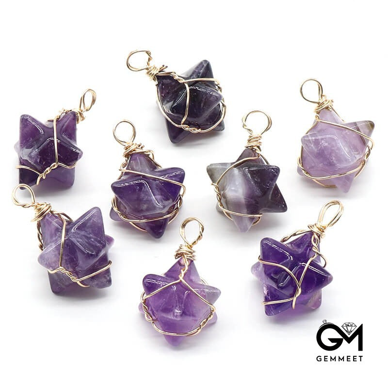 Merkaba Red Jasper Crystal Agate Stone Hexagram Pendant