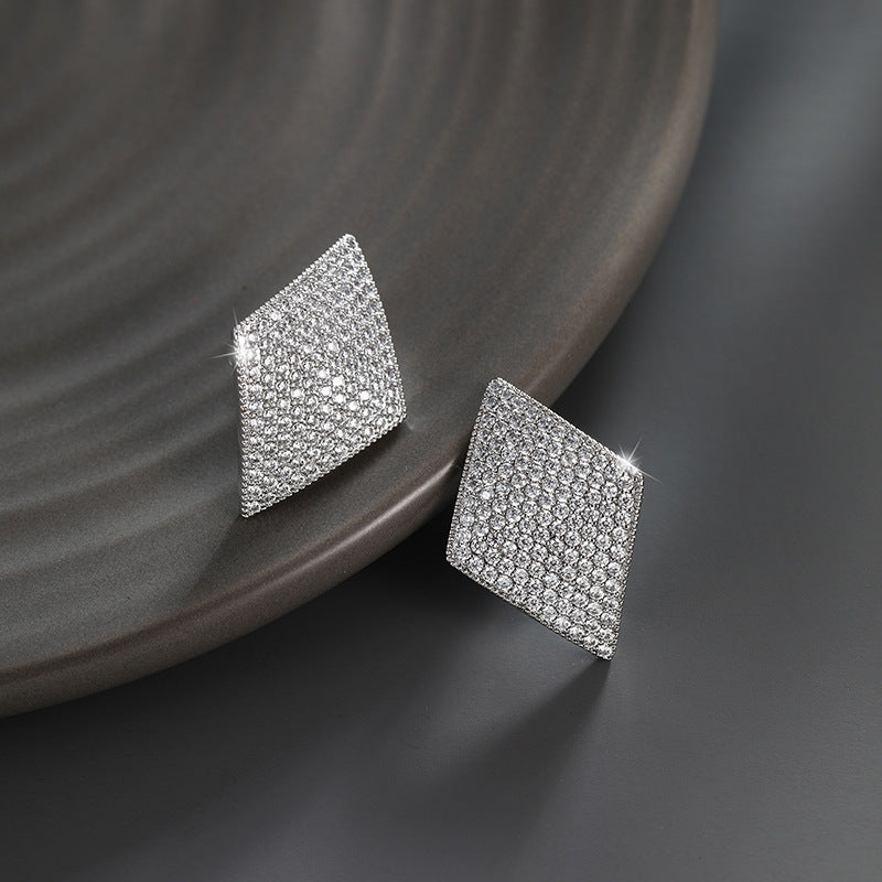Micro-encrusted Zircon Light Luxury Rhombus Earrings