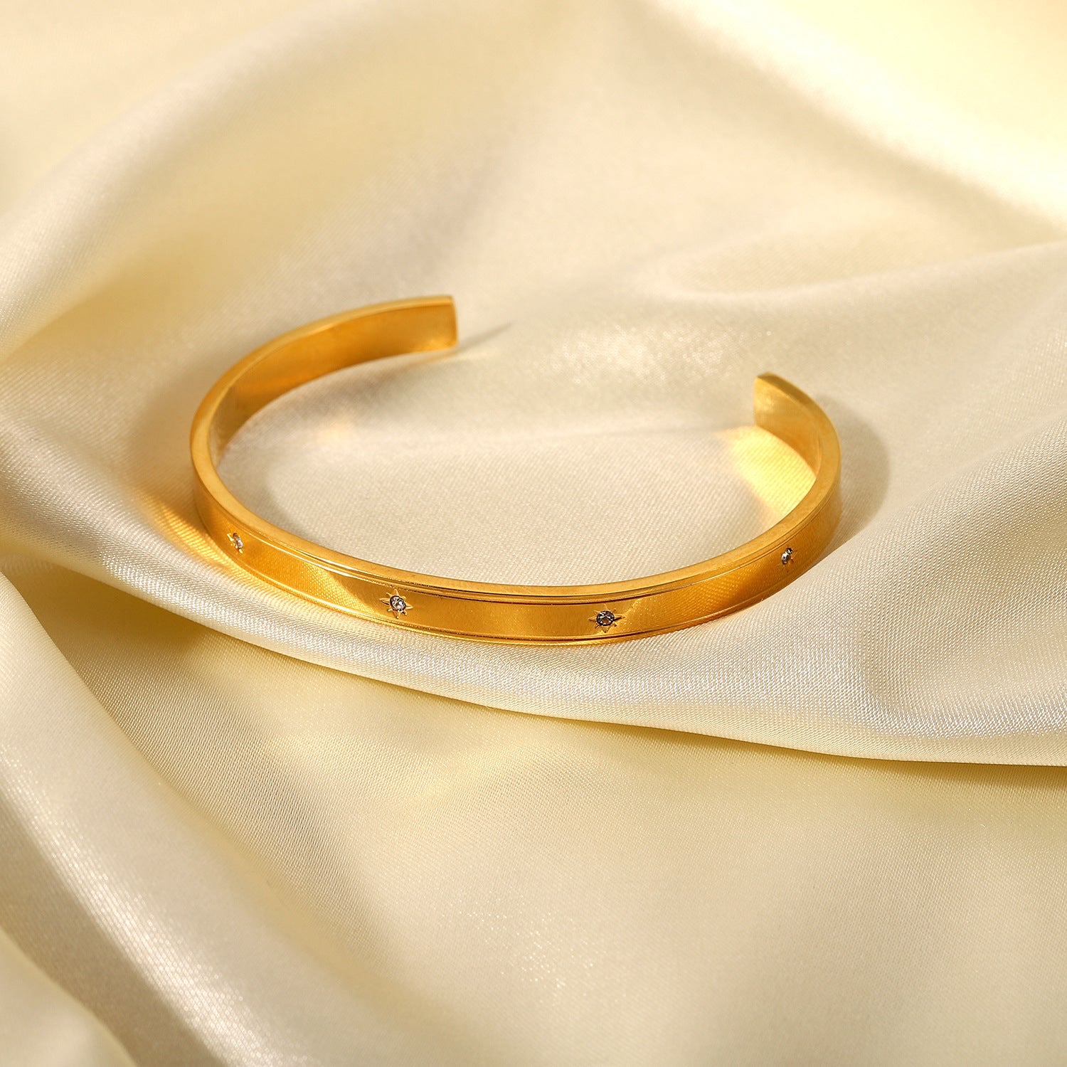 Minimalism Gypsy Setting Stones 2 Line Bangle Bracelet