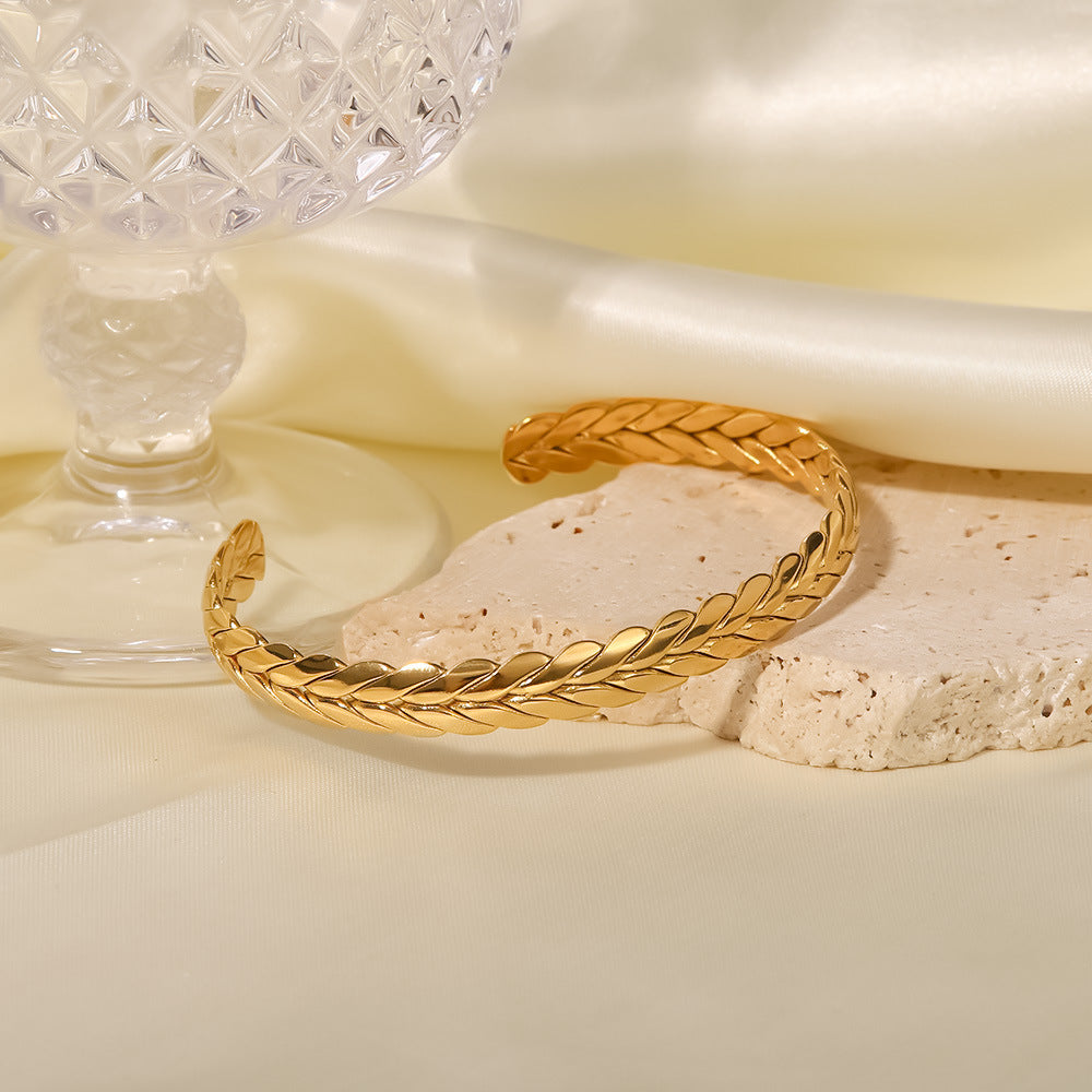 Minimalism Olive Leaf Shape Bangle Bracelet