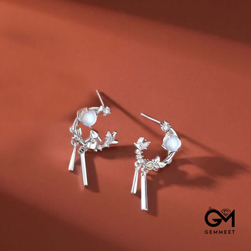 Moonstone Rabbit S925 Sterling Silver Plating Rose Gold Necklace