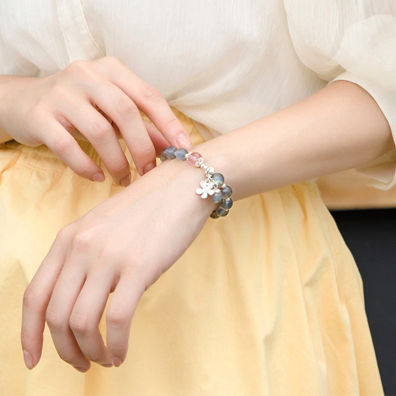 Moonstone Strawberry Quartz Flower Healing Charm Bracelet