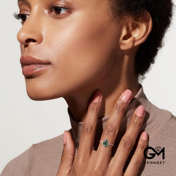 Moss Agate White Zircon Six Claw Ring