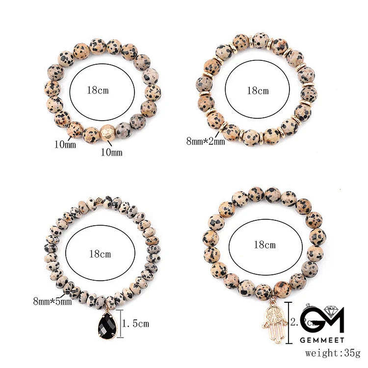Natural Dalmatian Jasper Obsidian Hamsa Pendant Bracelet