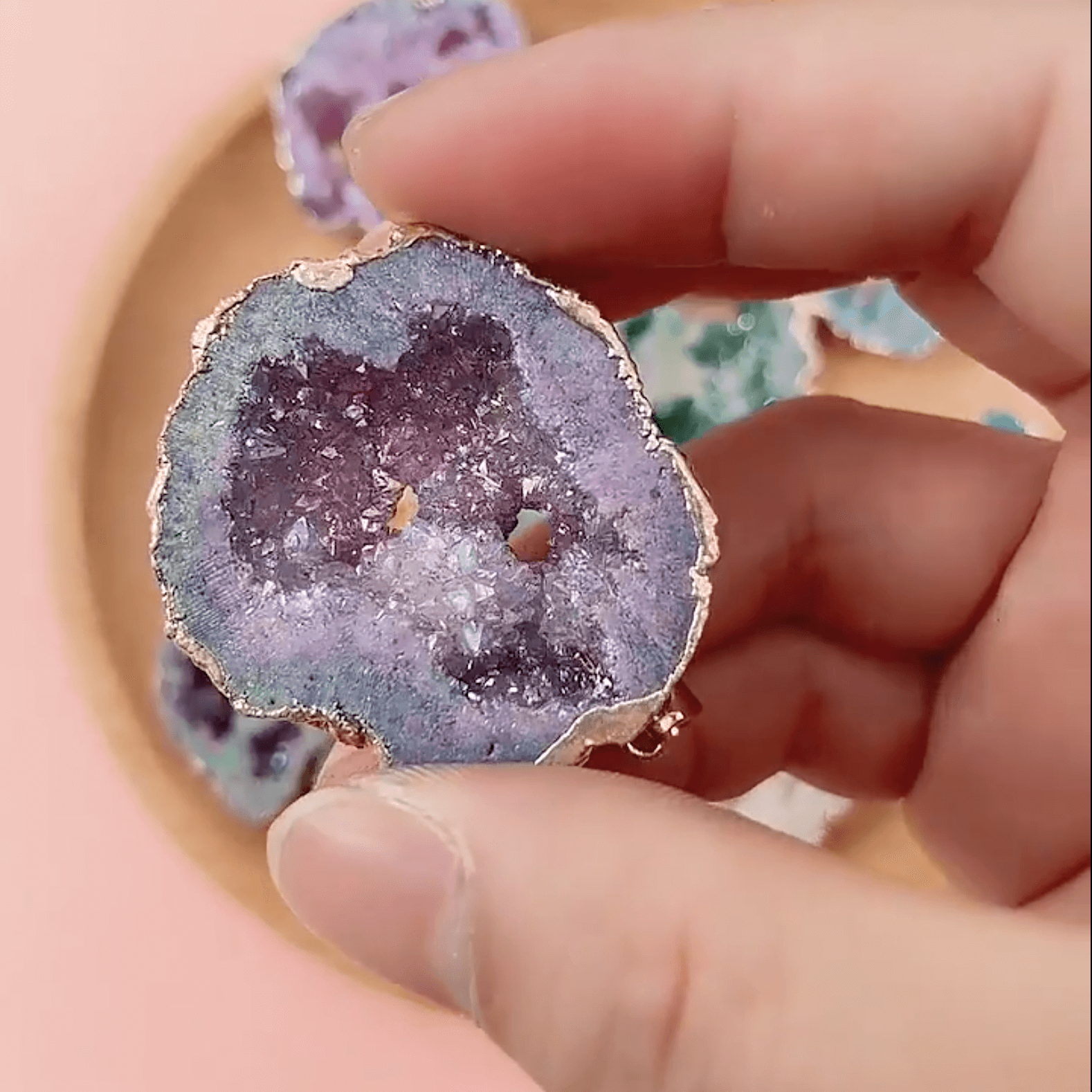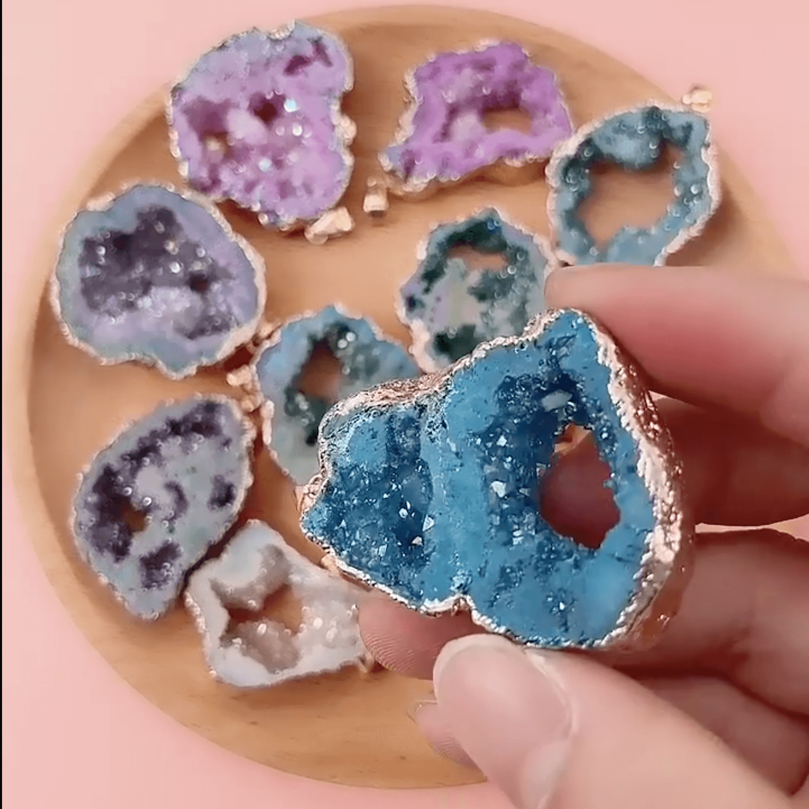 Main Stone: Blue Crystal, Amethyst, Green Crystal, Clear Crystal, Rose Red Crystal (Random Shape & Color, Matching Golden Chain)