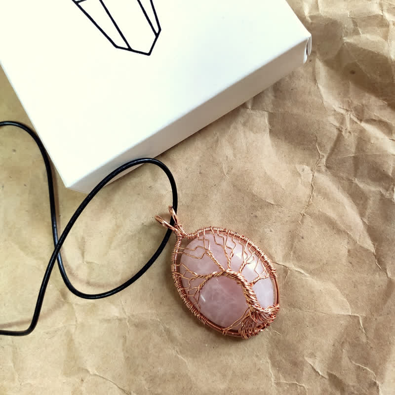 Oval Tiger Eye Tree Of Life Gemstone Necklace