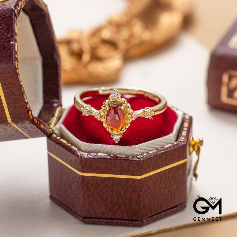 Oval Wreath Garnet Red Open Ring