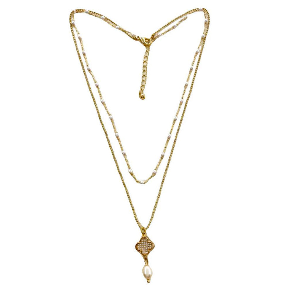 Pearl Copper Set Zirconium Four-leaf Clover Necklace