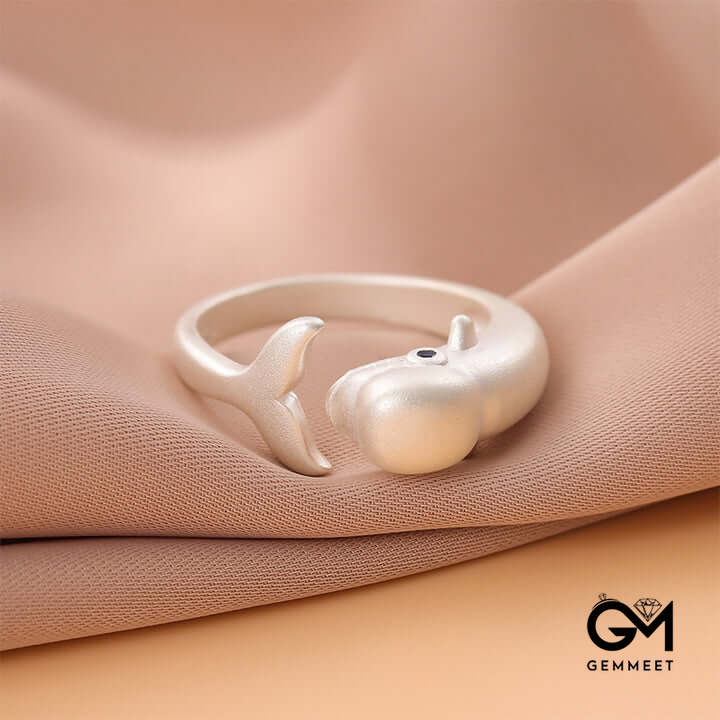 Personalized Sandblasted Cute Blue Eyes Fat Whale Ring