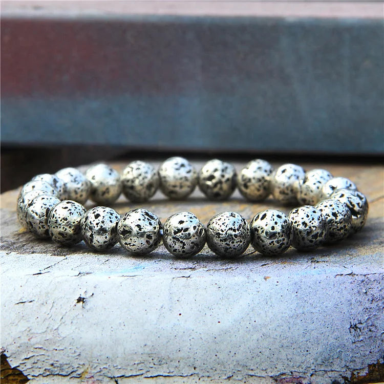 Plated Lava Stone 8mm Beaded Men Bracelet