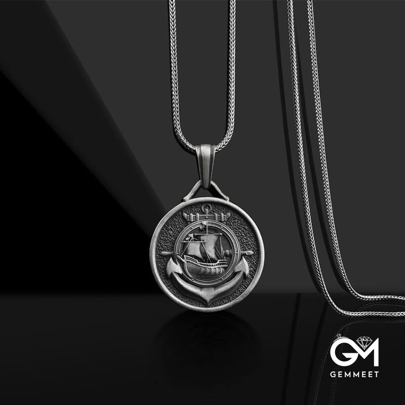Punk Style Pirate Sailboat Anchor Necklace