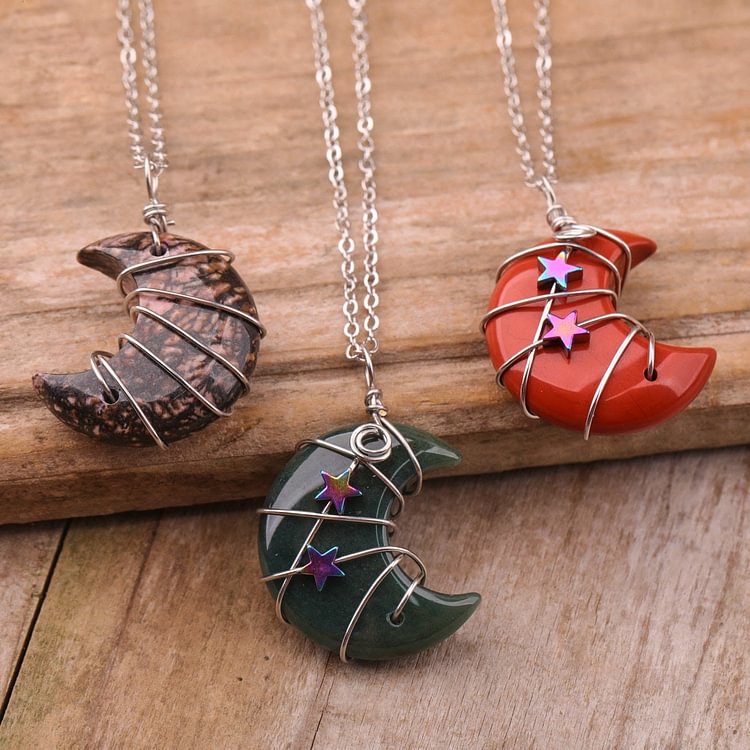 Quartz Crystal Moon Wire Wrapped Star Necklace