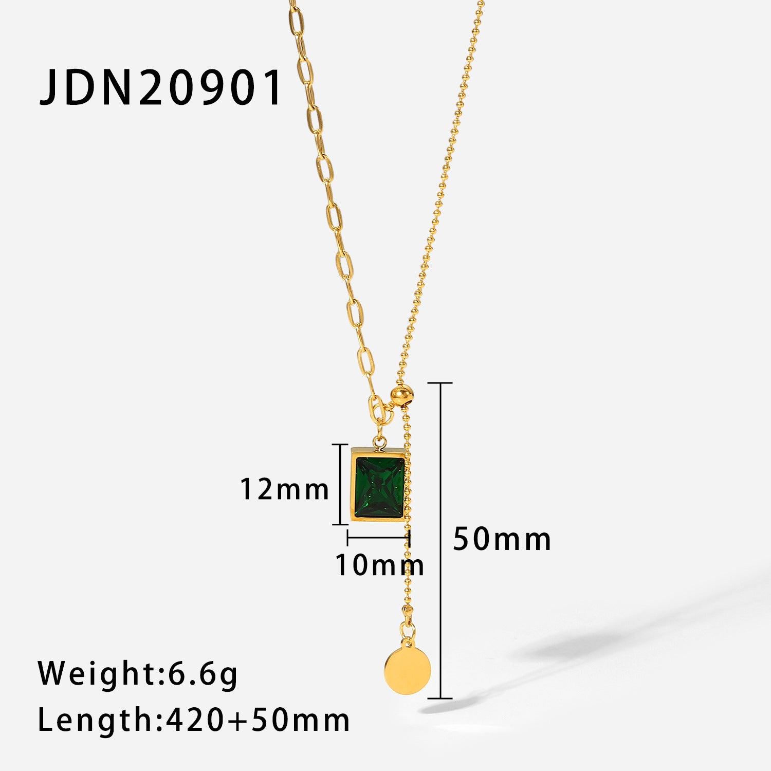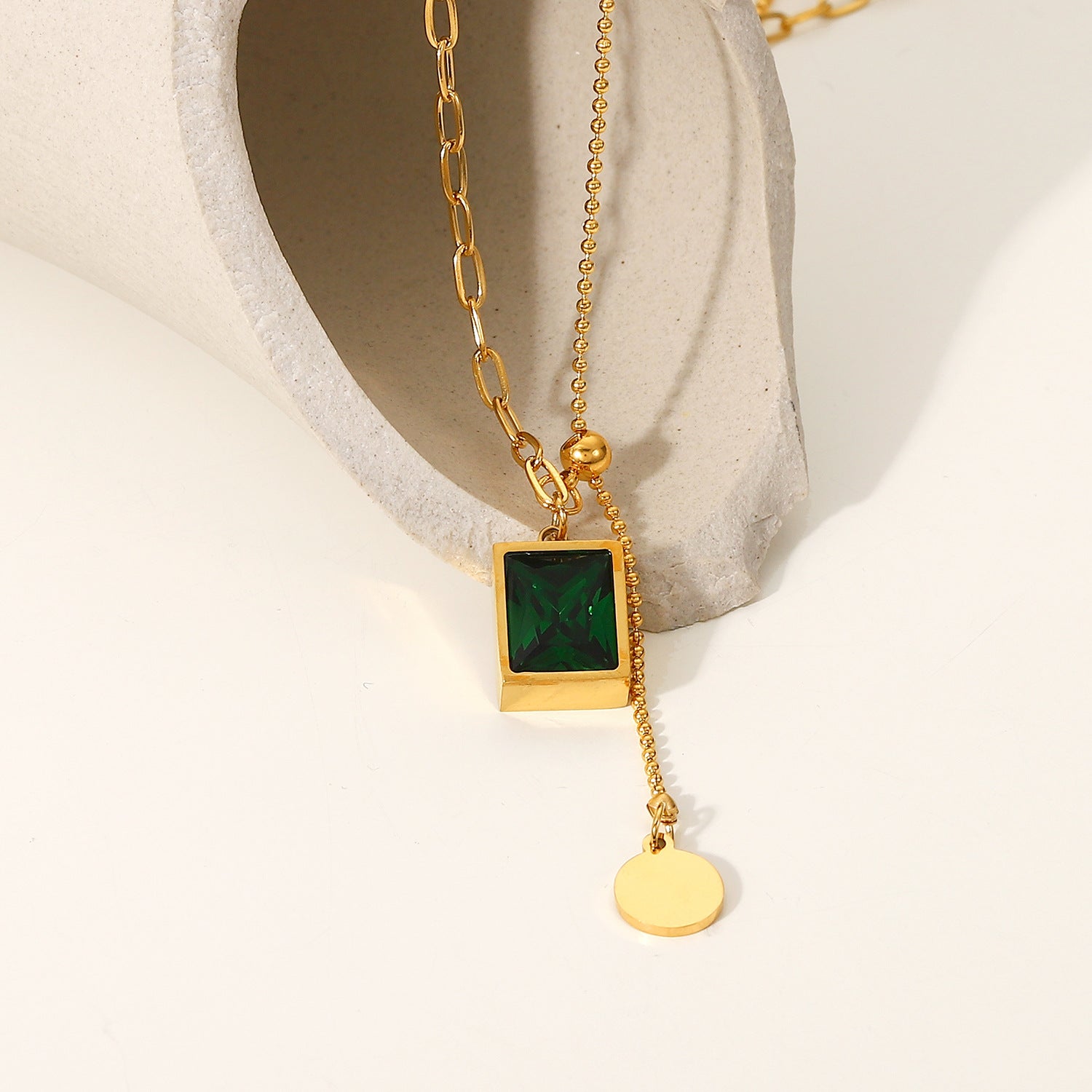 Rectangle Green Crystal Dangle Pendant Chain Necklace
