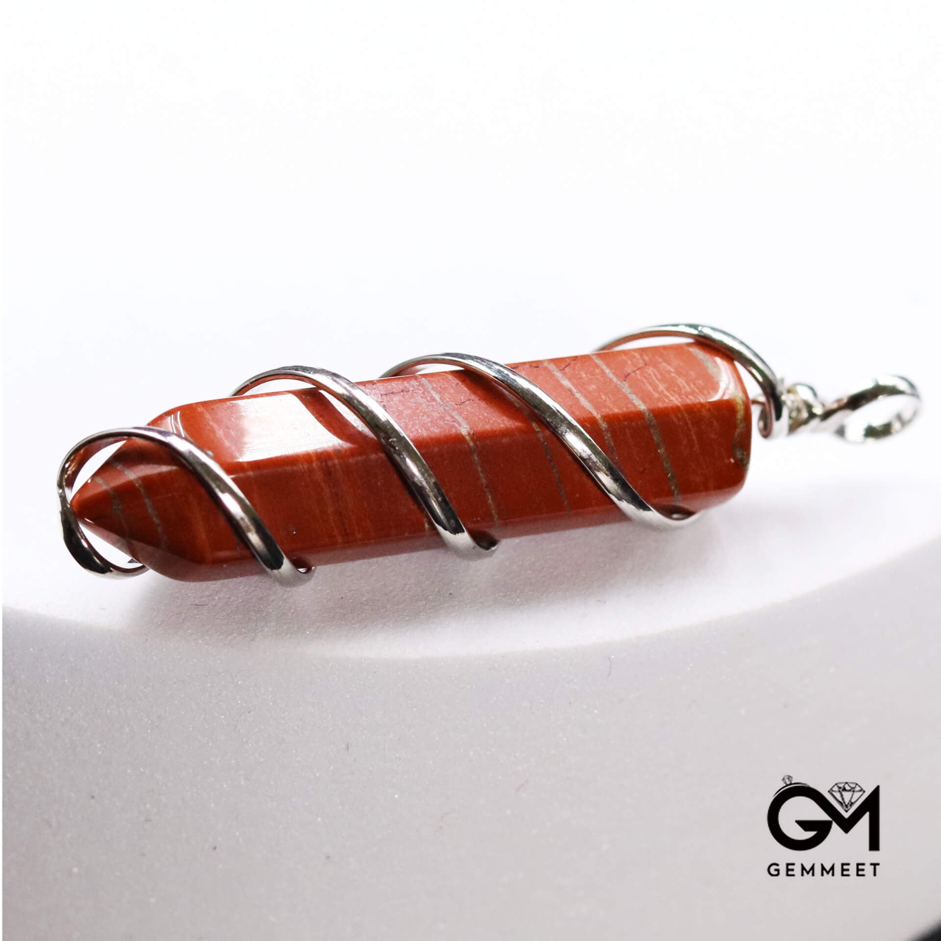Red Stone Hexagon Spiral Agate Wound Pendant