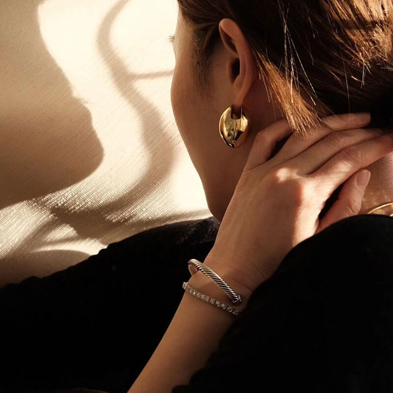 Retro Gold Eggshell Earrings Simple Fashion High Sense Water Drop Metal Circle Earrings